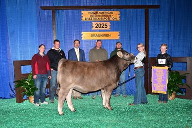 SW Rachael 2509 ET Miss BBB 2232 "Katie" x BLC Toronto 618 D The flush mate sisters are so cool. A huge Thank you to Hunter aka "Junior", Morgan Conrad, and Collin Langston for getting the girls fitted up. Dustin Hall for helping get all the equipment loaded and unloaded. Daniel Roberts for helping get calves where they needed to be and ours girls #1 fan. All our Braunvieh family that keep supporting this show. We could not continue to have this show without everyone's support! Congratulations to all the winners this week!