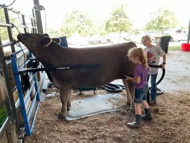 We had a great trip to Springfield. Ozark Empire and our Braunvieh peeps did not disappoint!! Annabelle had a solid showing with 2 supreme drive finishes and Milly took Reserve Grand in the open show. But I couldn't be more proud that Elynn won Junior showmanship!! Little sister, Natalie was the best big helper from helping with cows to passing out ribbons! Can't wait til the next show JBAA!