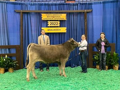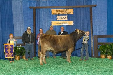 We would like to personally thank everyone who gave, showed up, and/or supported this 2022 NAILE Braunvieh show. This years show was a success and the JR'S were able to shine. The Jr judge talked about how impressed he was with the set of cattle we brought and that our kids could compete with any group of JR'S across the country. These kids represented our breed to the max! Thanks again for all of your support. We couldn't do it without all of you.